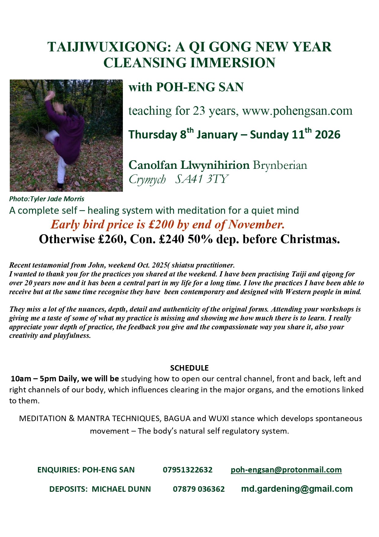 TAIJIWUXIGONG IMMERSION THURSDAY 8th - Sunday 11th January 2026